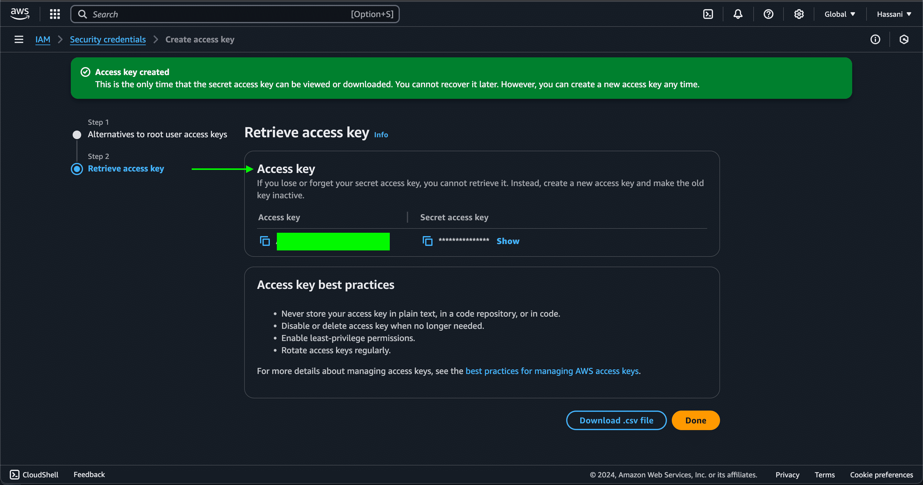 2. Once you are done, a pair of both Access and Secret Access keys will be generated.
