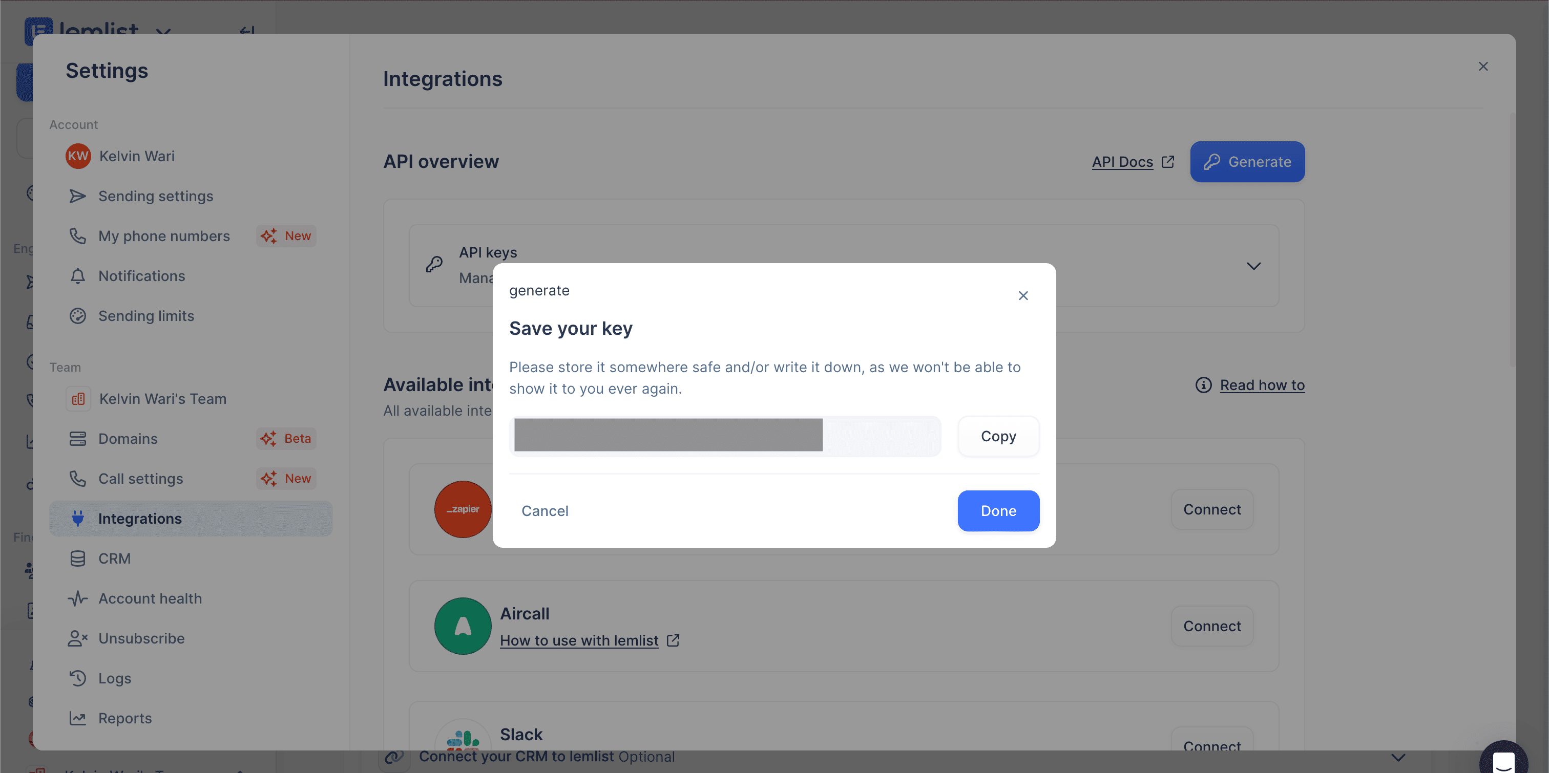 This guide will walk you through generating your API Key within lemlist.