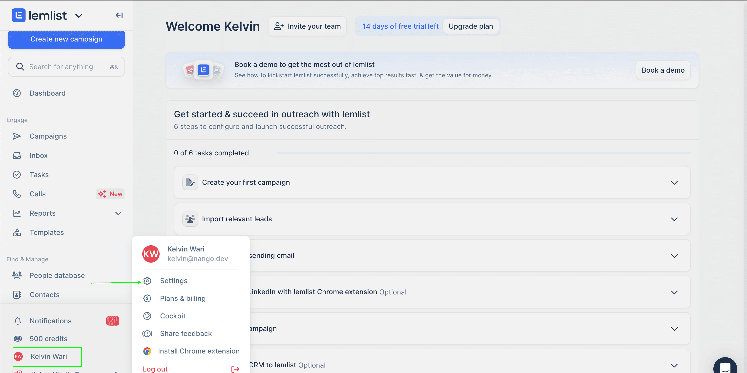 1. Sign in to your lemlist account.